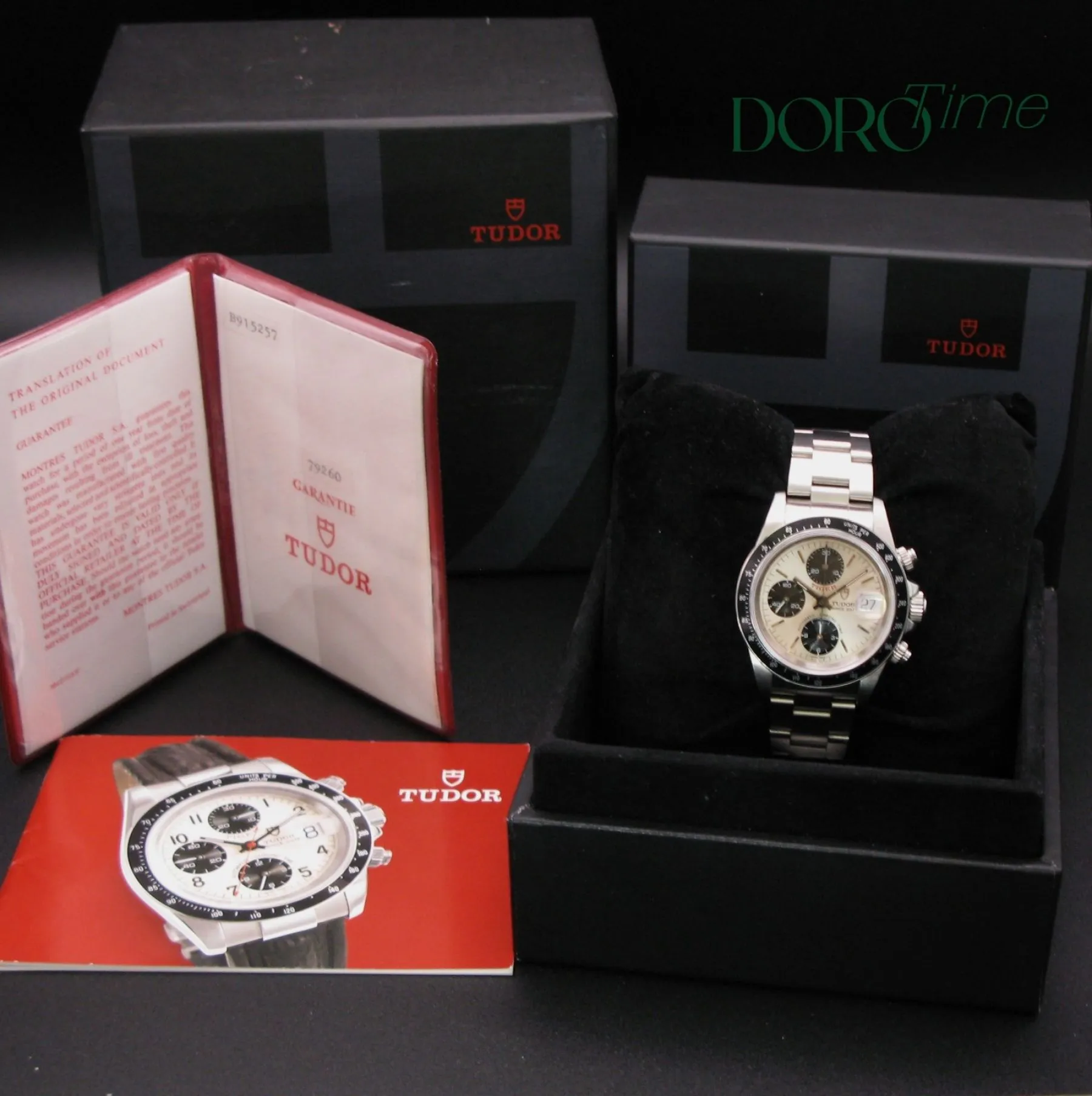 Completo di scatola, garanzia originale e certificato di autenticità, è un pezzo ideale per collezionisti e appassionati che cercano un cronografo iconico della linea Tudor Prince.