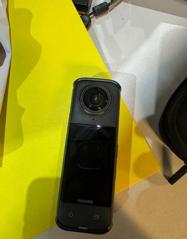 Insta 360 x4 mit Stativ, Tasche und Box sowie Speicherkarte.