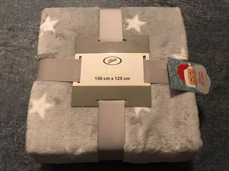 Wunderschöne, weiche Wohndecke in zeitlosem Grau mit weissen Sternen. Ideal für gemütliche Abende auf dem Sofa oder auch perfekt fürs Kinderzimmer.