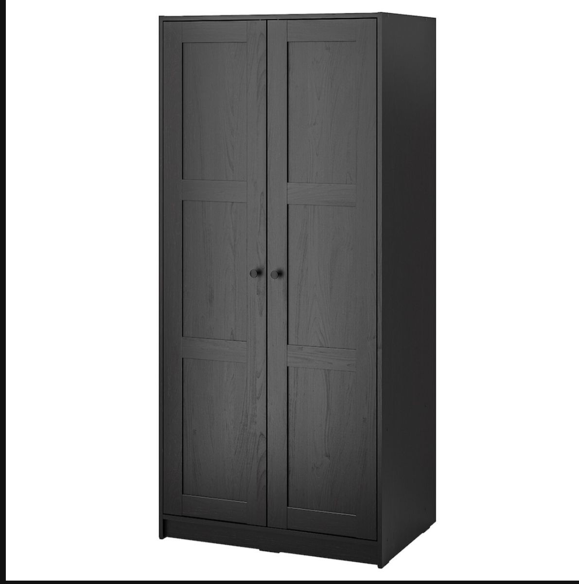 Je vends 2 armoires IKEA RAKKESTAD, brun noir, dimensions 79x176 cm chacune.