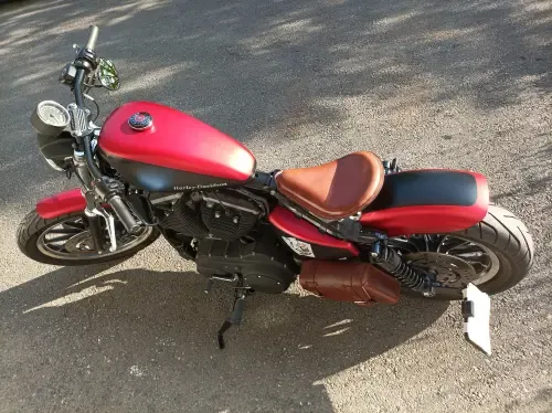 Motocicletta Harley Davidson Bobber in stile "Harley Quinn" basata su Sportster Roadster 883 (doppio disco anteriore)