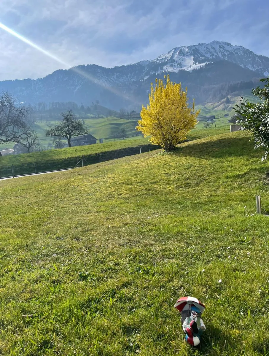 Kleine Wohnung in einem Mehrfamilienhaus in Ennetmoos Nidwalden, 11/2 Zimmer, Schlafraum mit Schiebetür, Wohnraum mit offener Einbauküche, Essbereich und Wohnbereich. Toilette separat vor der Wohnung. Kleiner Abstellraum abschließbar im Kellerraum, Terrasse mit offenem Zugang zur Grundstückswiese, Eingang mit Haustür über die Terrasse, oder Eingang über Hauseingang. Sehr schöner Blick vom Wohnraum ins Tal nach Stans und Stansstad. Freier Parkplatz nutzbar. Gute Anbindung an öffentlicher Nahverkehr über Postbus. Neue Heizung wurde 2024 im Gesamthaus installiert, mit Wärmepumpe daher sehr niedrige Heizkosten. Tel.: 00491712605118